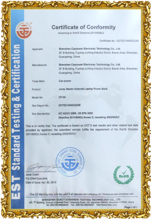 As for company quality management, Carpower has passed the ISO9001 International Quality System Certification. We are highly qualified & with all the necessary certifications, such as CE, ROHS, FCC, UN38.3, etc. Moreover,Carpower also approved by SGS.